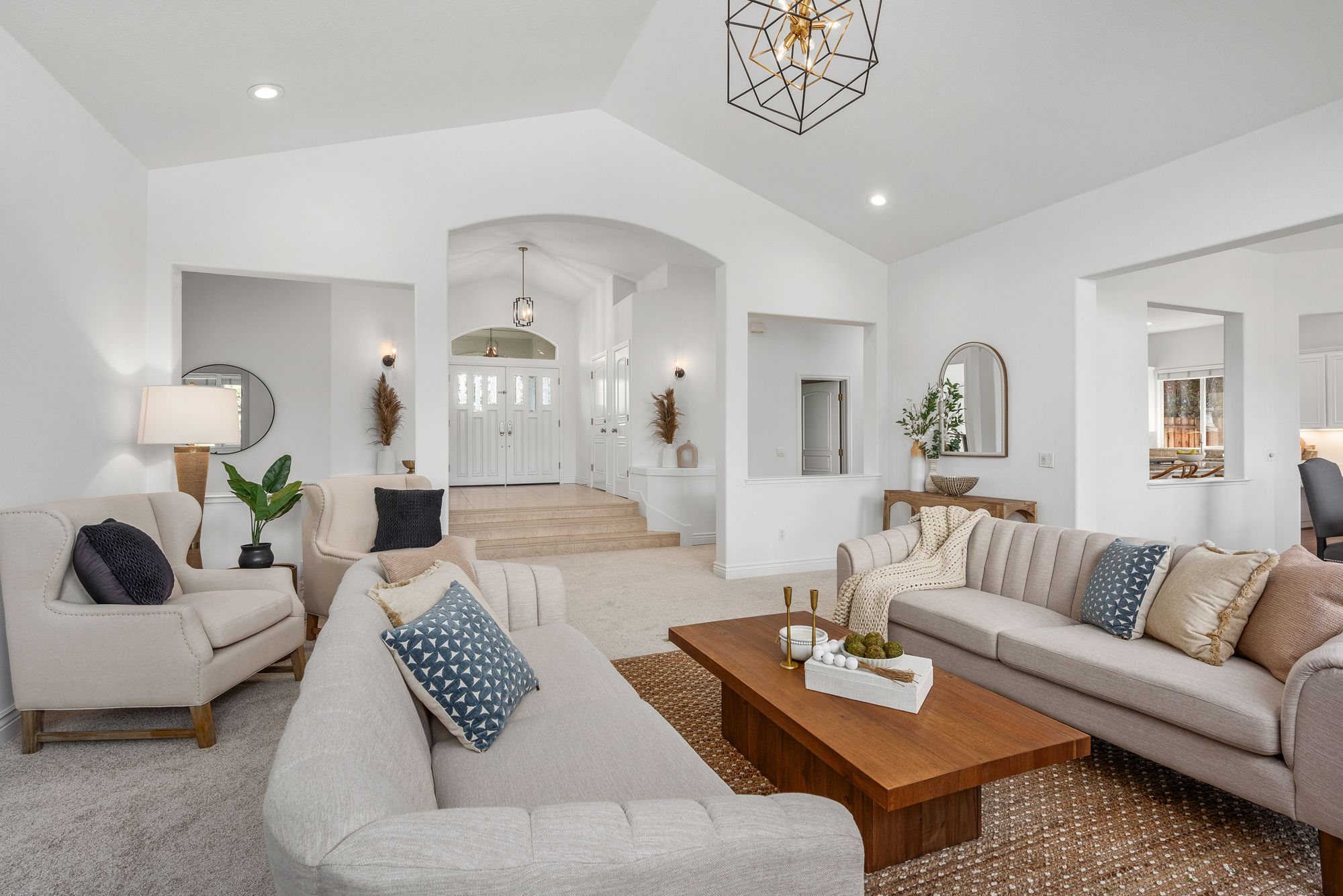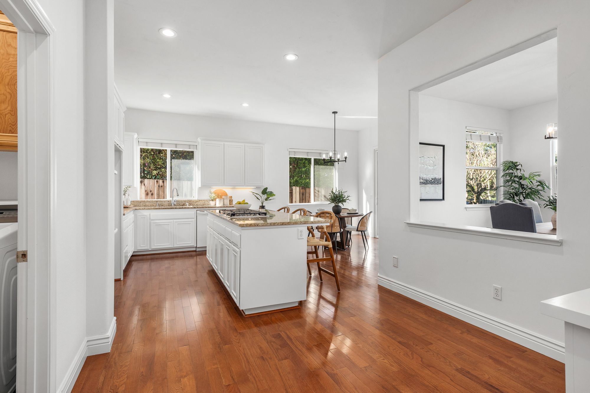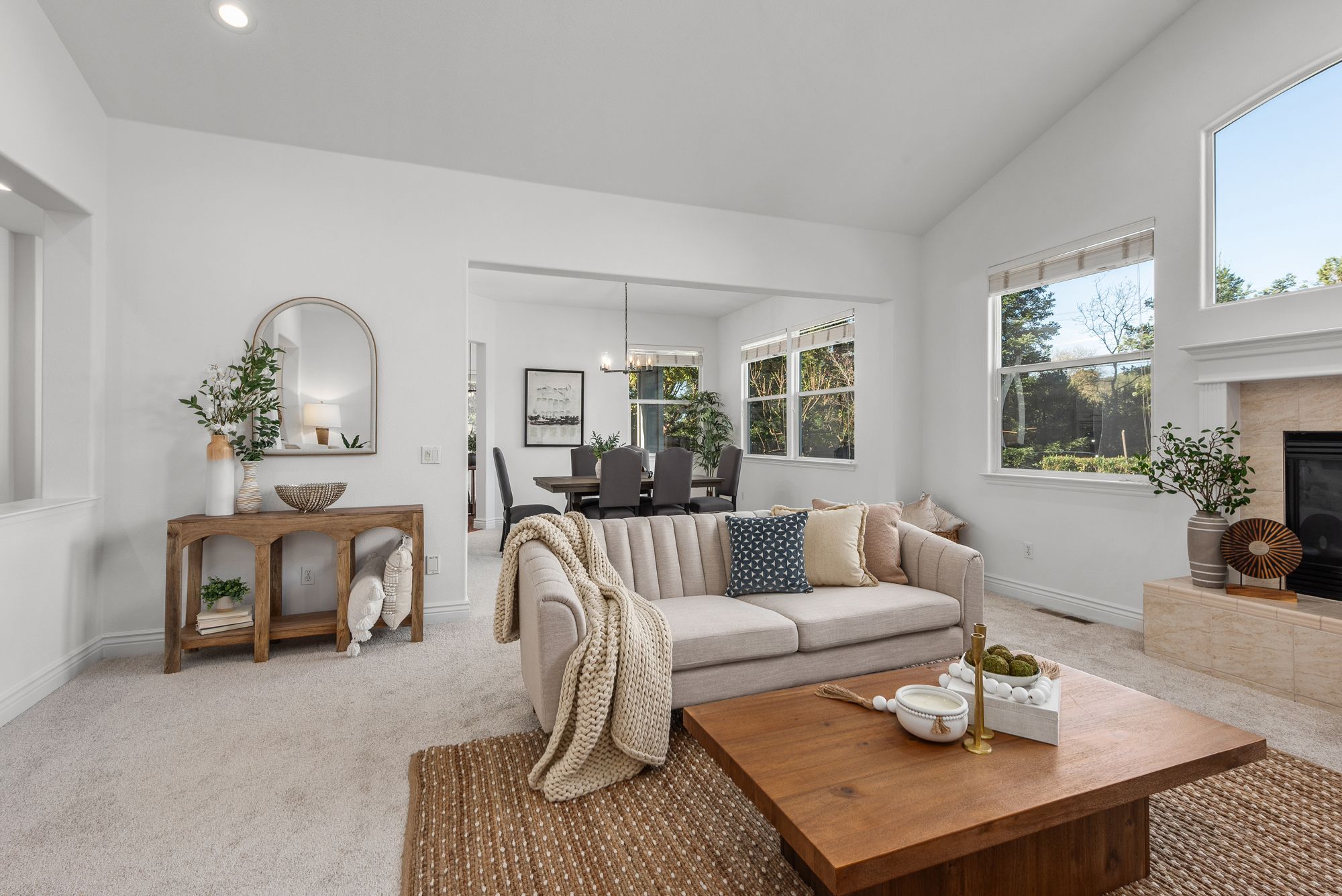 Inside, the 2,538-square-foot layout is defined by high ceilings and a flowing floor plan that maximizes natural light. The primary living areas transition together with ease, creating a functional environment for both daily routines and hosting guests. The fresh updates throughout ensure the home is ready for immediate enjoyment while maintaining a versatile character.