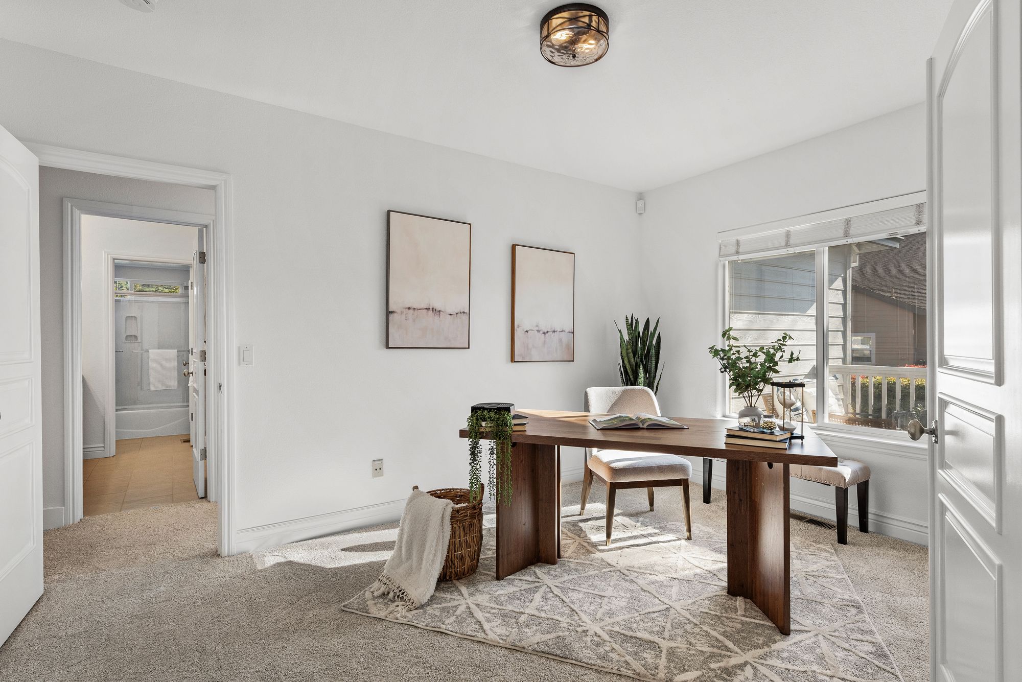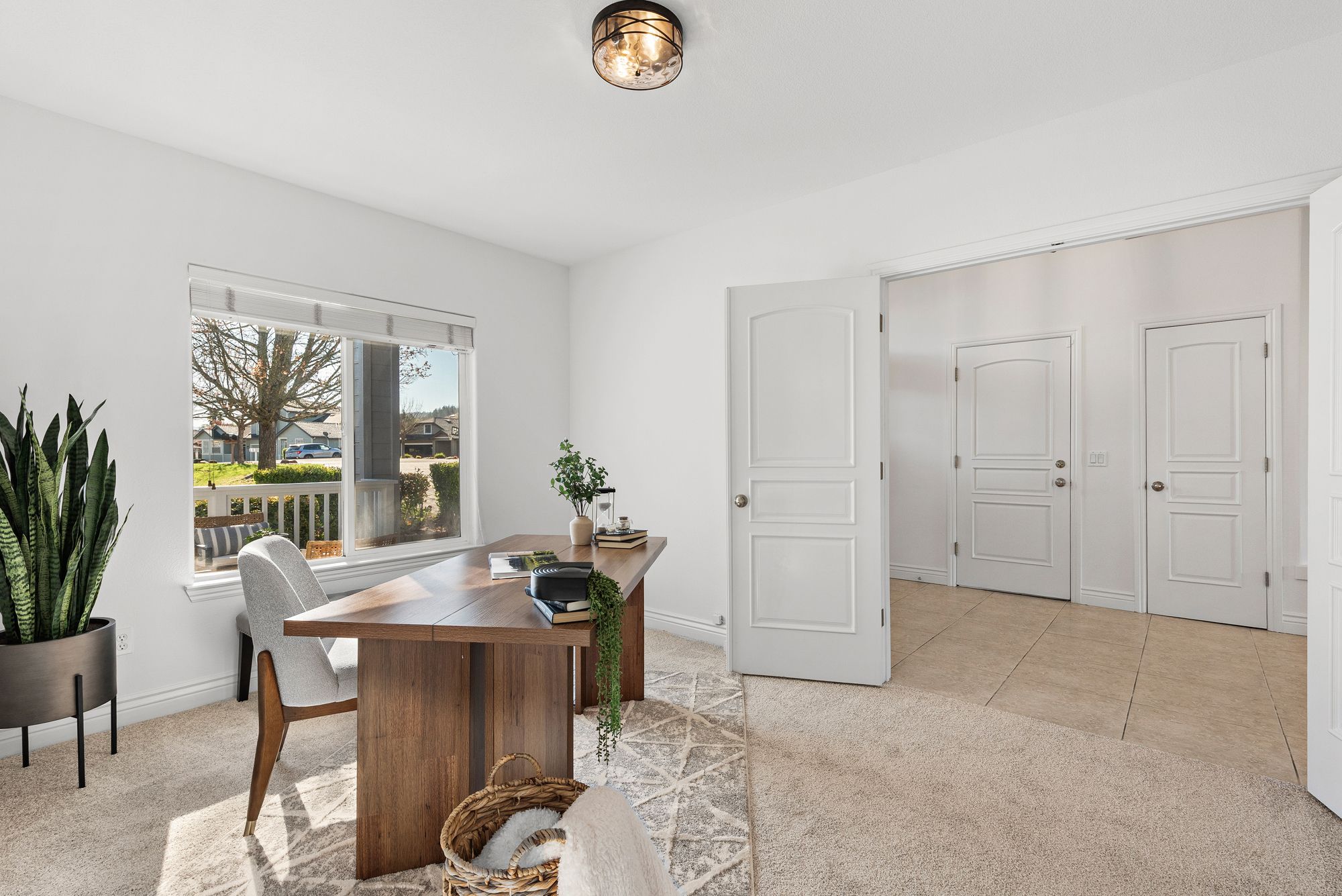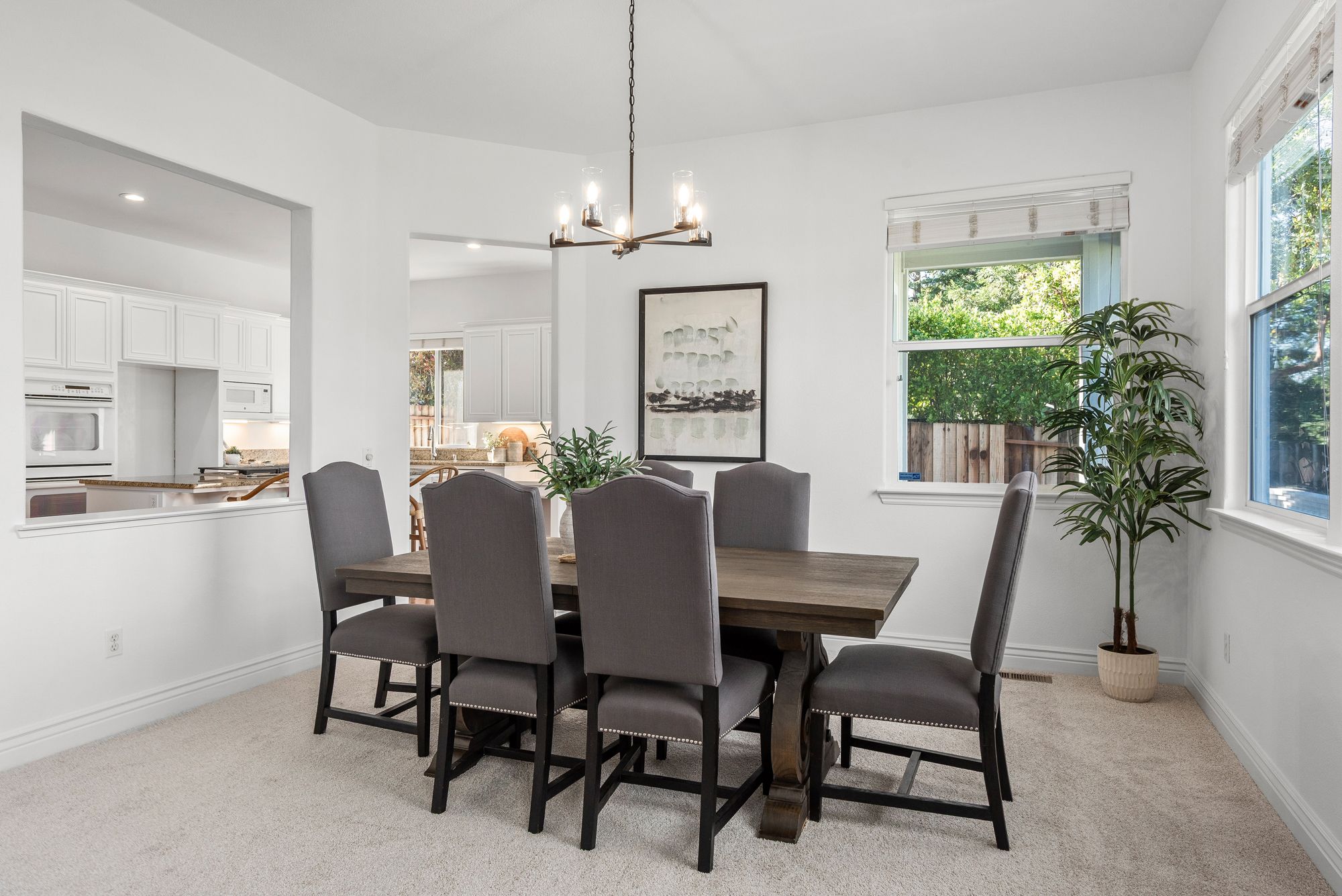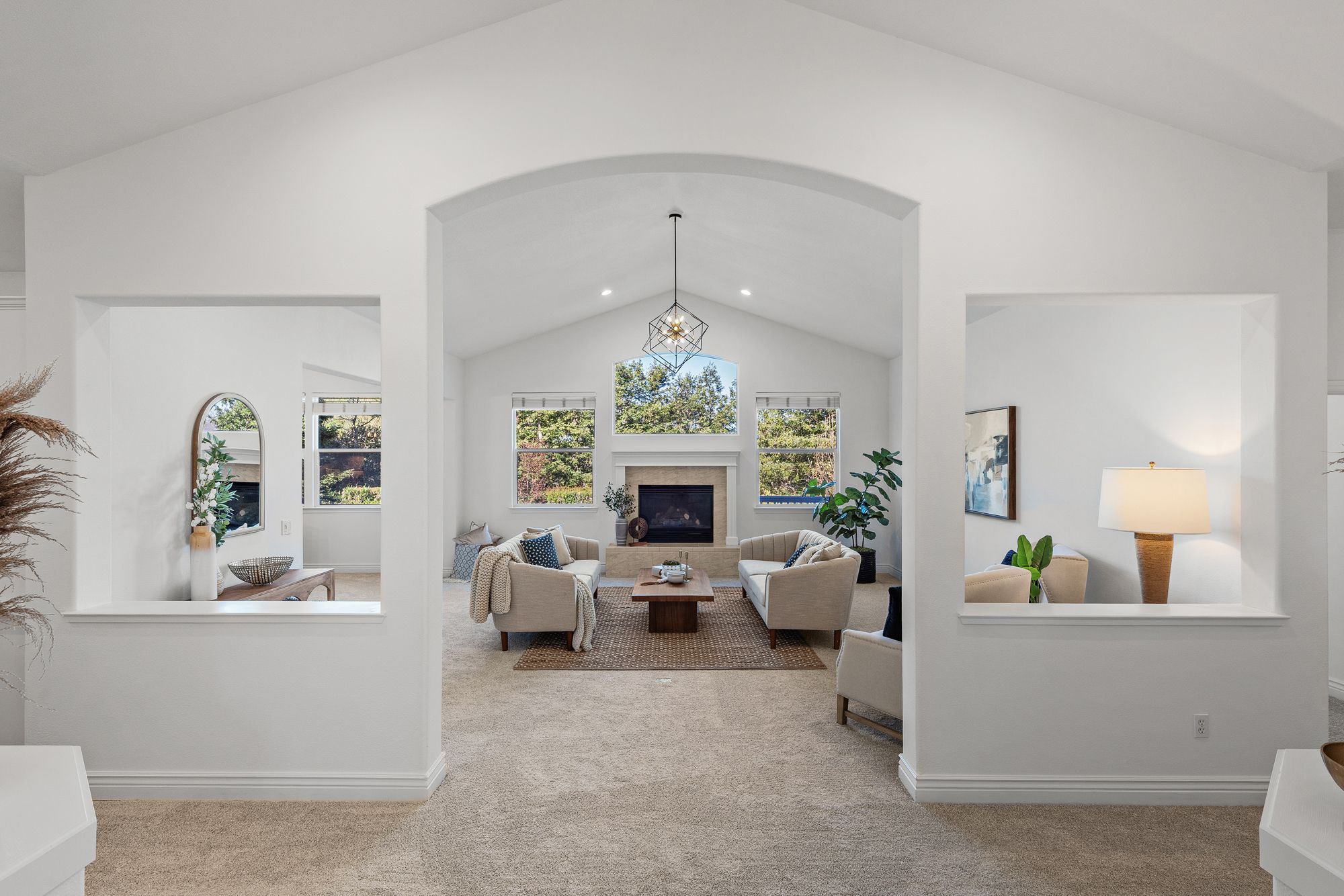 Inside, the 2,538-square-foot layout is defined by high ceilings and a flowing floor plan that maximizes natural light. The primary living areas transition together with ease, creating a functional environment for both daily routines and hosting guests. The fresh updates throughout ensure the home is ready for immediate enjoyment while maintaining a versatile character.